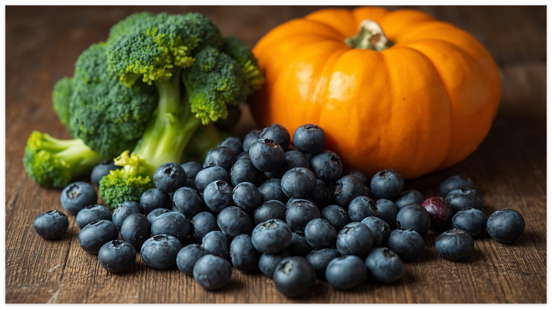 - 블루베리, 브로콜리, 단호박 등 항산화 식품