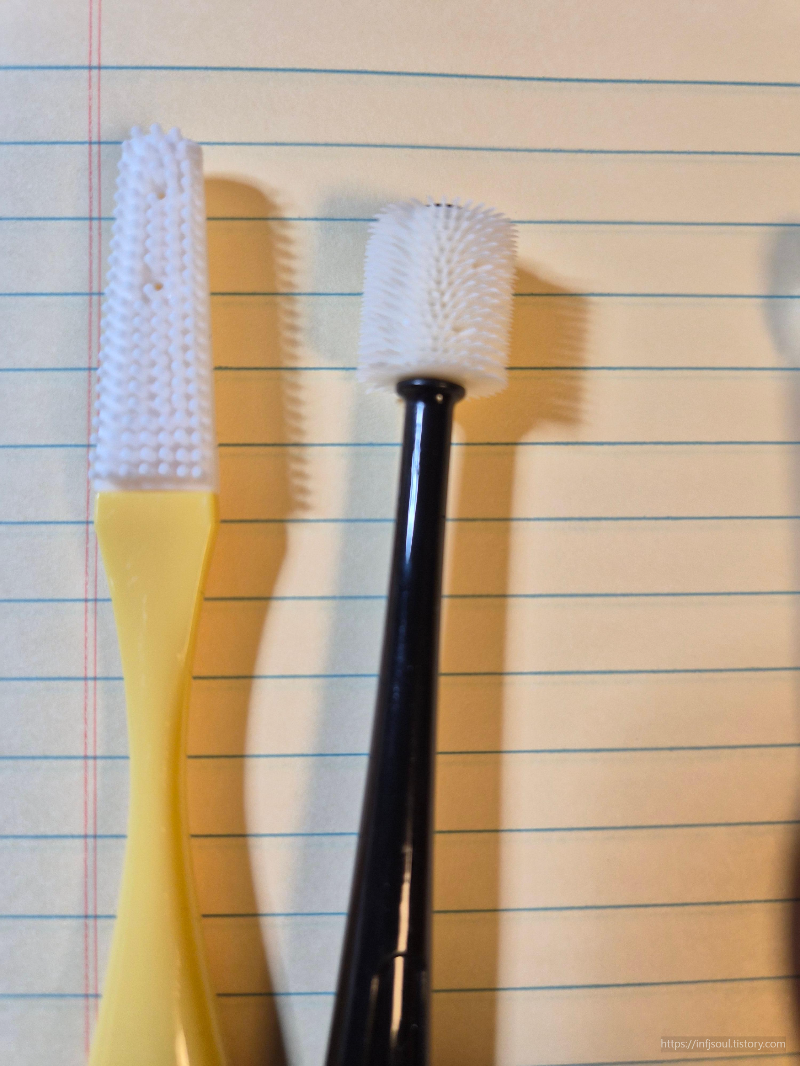 - 실리콘 360도 칫솔과 혼동 주의 (세척력 낮음)