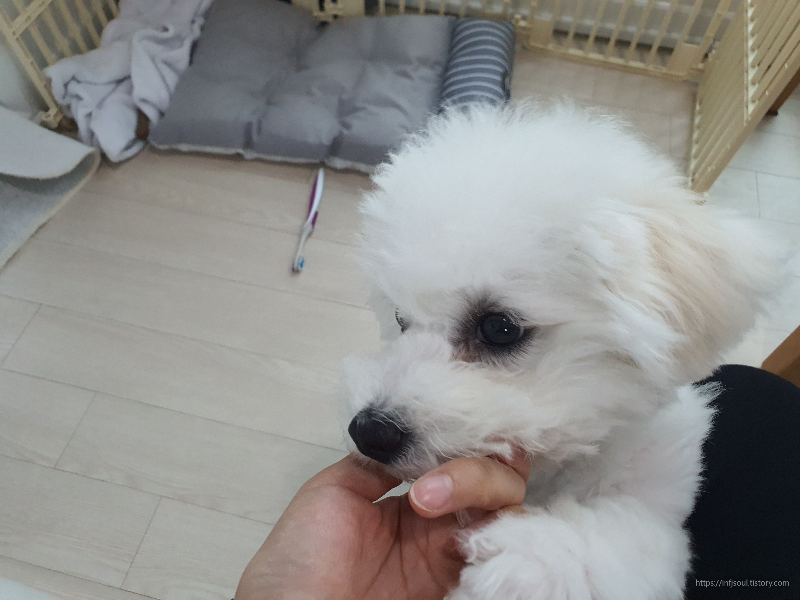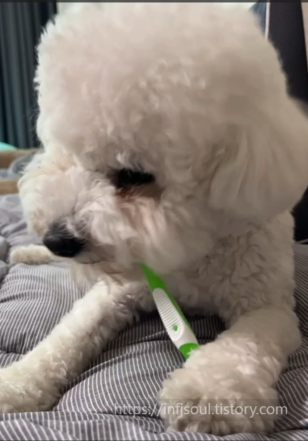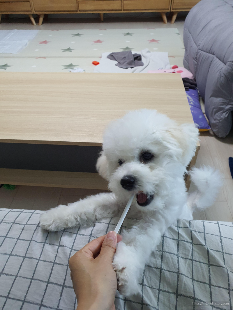 유치 시기부터 양치를 경험한 강아지는 성견이 되어도 거부감이 거의 없습니다.