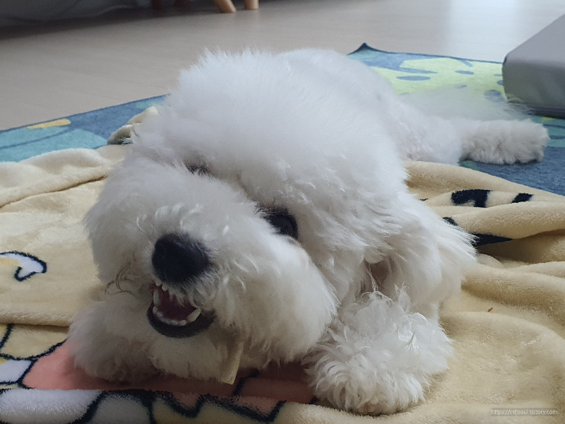 - 강아지의 침은 알칼리성이라 충치균 증식이 어렵지만