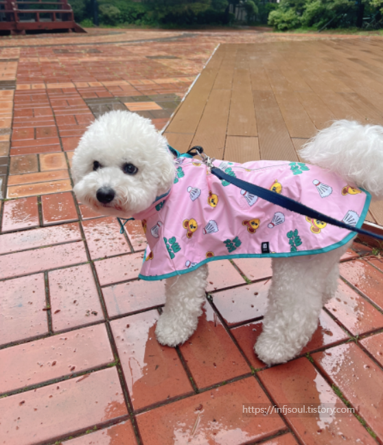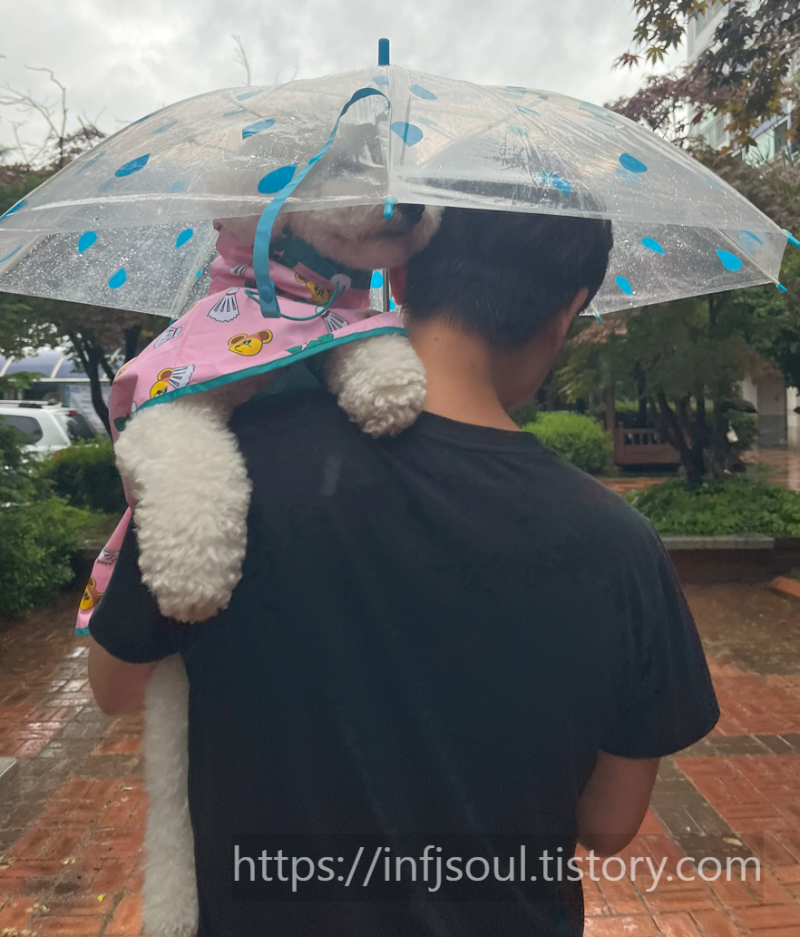 - 비 오는 날 산책이 불가피하다면 우산이나 반려견 전용 우비를 준비해 두는 것이 좋습니다.