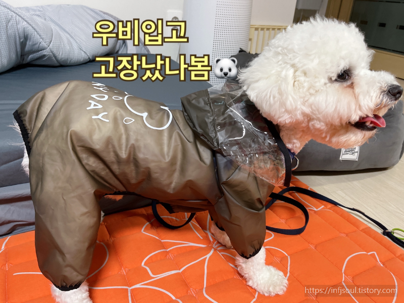 이럴 땐 실내에서 우비를 입힌 채 간식을 주거나 함께 놀아주며 긍정적인 경험으로 연결해 주면 점차 익숙해질 수 있습니다.