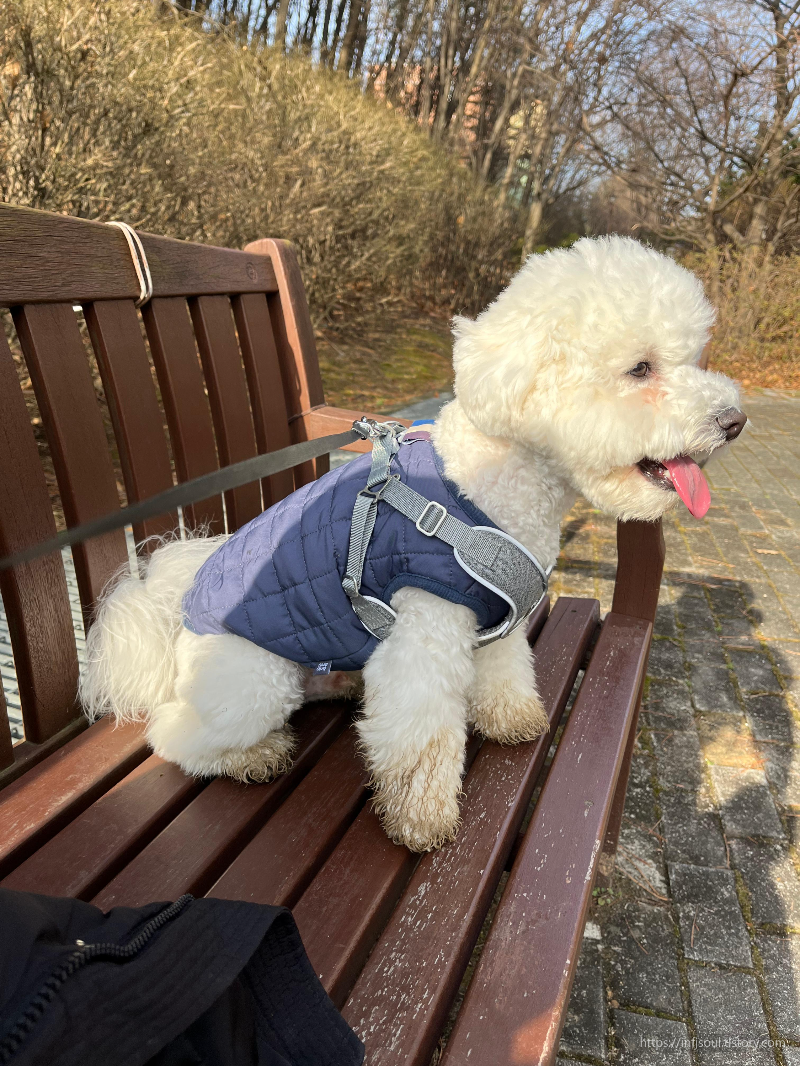 봄이는 겨울철엔 옷과 하네스를 이렇게 조합해요 👇