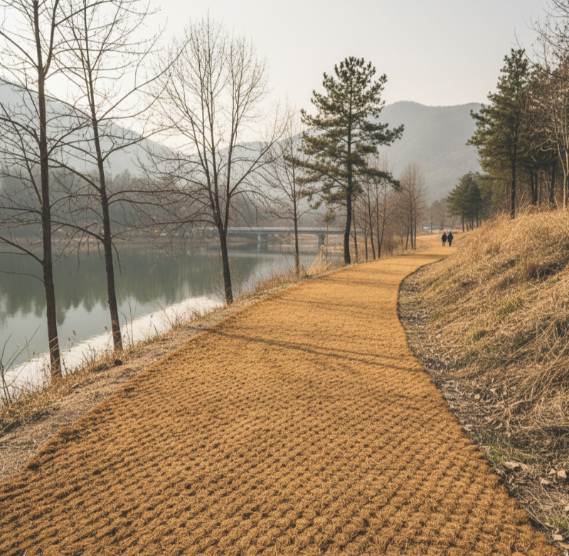 → 얇은 얼음막(블랙아이스) 형성 가능 - 산책로의 미끄럼 방지 발판
