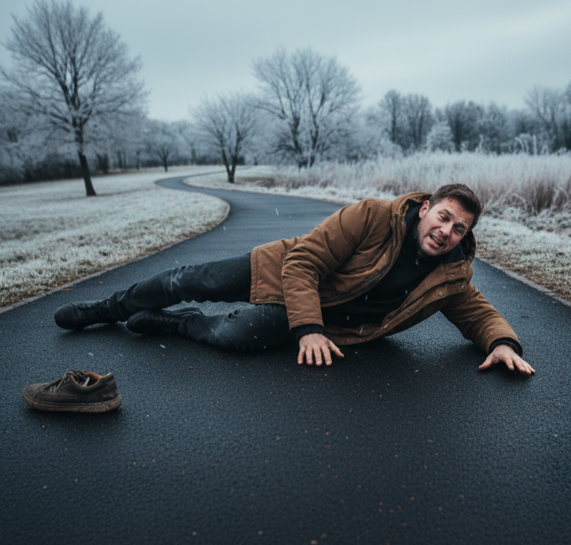 저 역시 어제, 눈도 얼음도 보이지 않는 산책로에서 미끄럼 방지용으로 깔려 있던 발판 위에서 갑자기 미끄러져 그대로 주저앉는 경험을 했습니다. 손목과 다리에 멍이 들고, 시간이 지나면서 허리 통증까지 느껴지고 있습니다.
