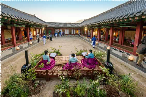 | ① 도슭수라상 시식 체험 | 왕의 일상식 ‘수라상’을 현대적으로 재해석한 도시락형 궁중음식. 가야금·해금 등 국악 공연과 함께 즐기는 미식 체험. |