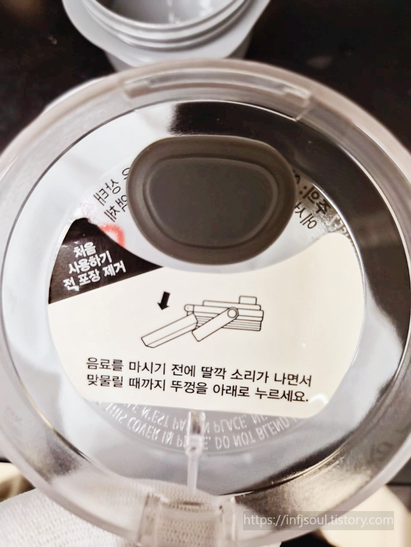“모터베이스를 분리하지 않고, 음용 뚜껑으로 교체해 그대로 컵처럼 마시는 방식”입니다.