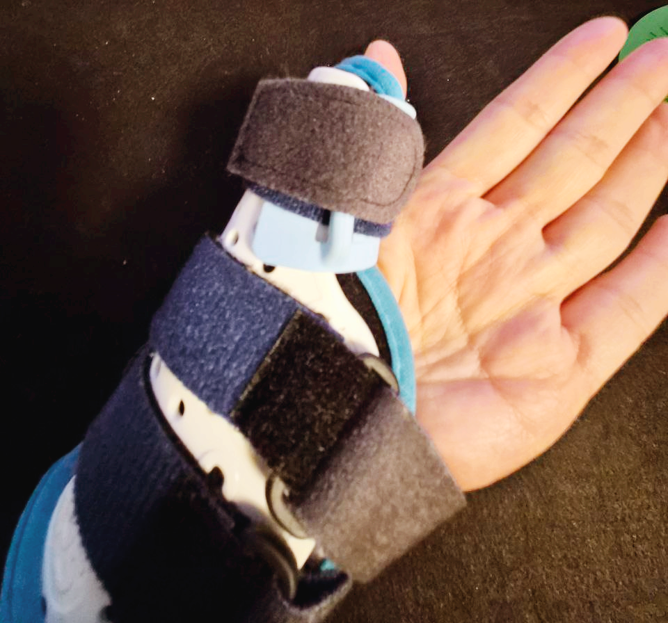 - 손목 사용을 줄이고, 손목·엄지를 고정하는 보호대를 착용합니다.