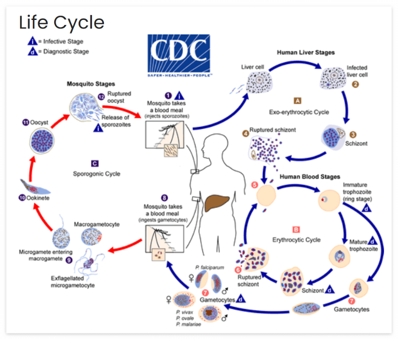 - 말라리아는 플라스모디움(원충, protozoa) 감염에 의해 발생