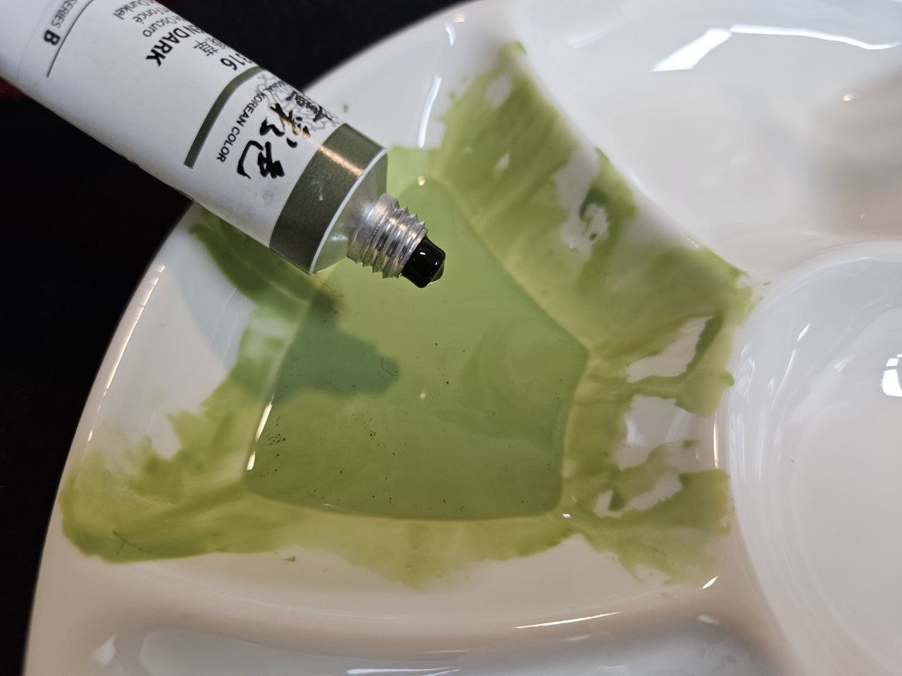 - 물감은 도자기 접시에 적색계, 녹색계, 청색계 등으로 나눠 굳혀두면 재사용 가능