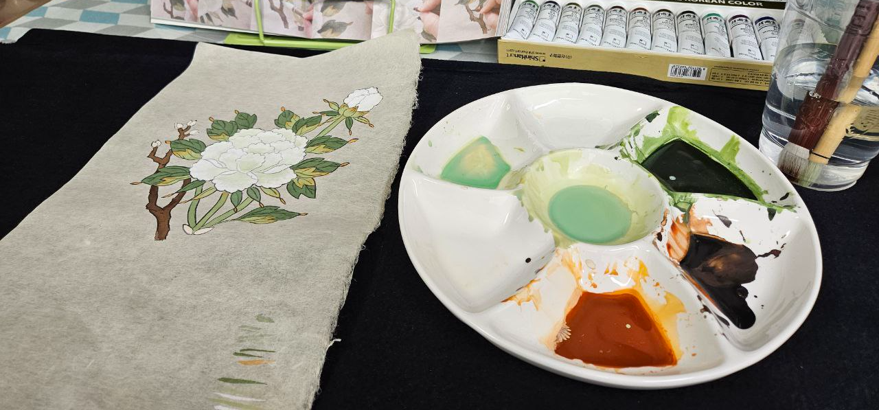 ‘호분’, ‘연지’, ‘청자’, ‘백록’처럼 고운 이름의 물감들, 조용히 스며들듯 덧칠하는 바림의 시간, 그리고 도자기 팔레트 위에 펼쳐진 고요한 색감들은 마치 “천천히 쉬어가도 괜찮다”고 다정하게 말해주는 것 같았습니다.