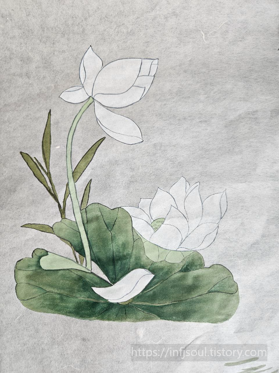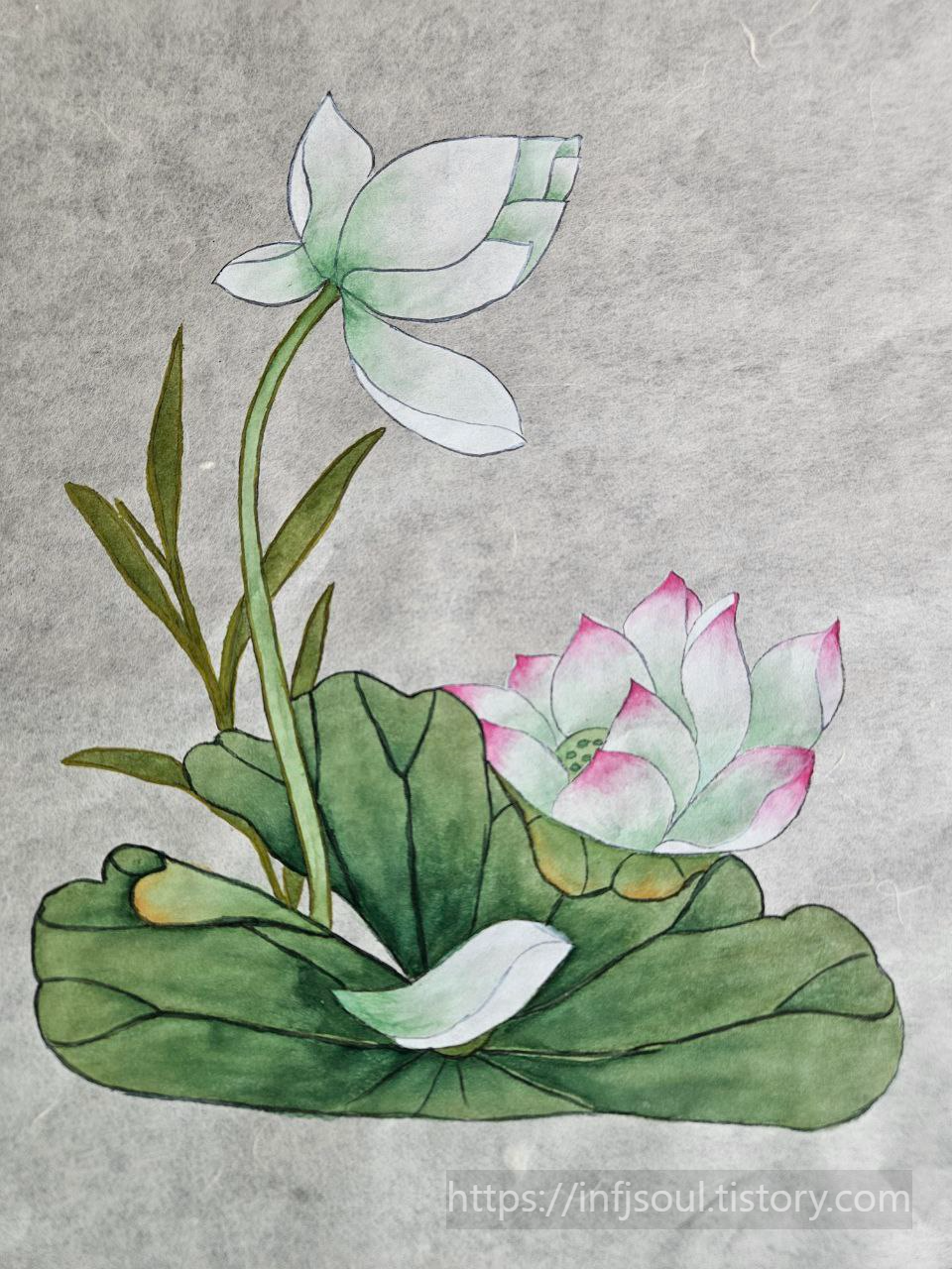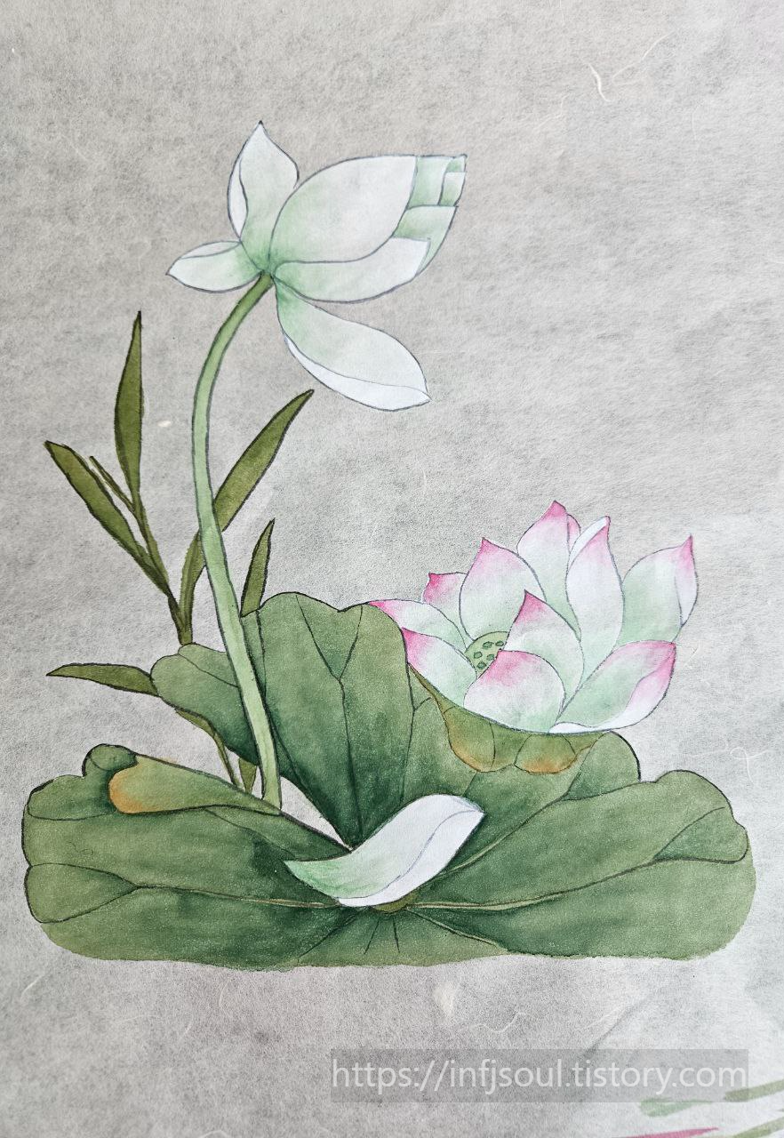저는 연꽃 끝을 칠할 때 나왔던 분홍색의 여운이 너무 예뻤어요.