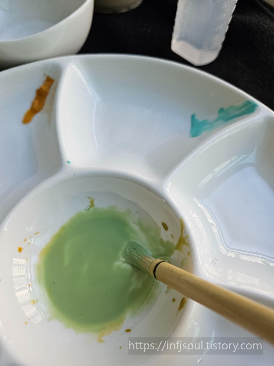 색을 섞은 후에는 바로 도안에 칠하지 말고,