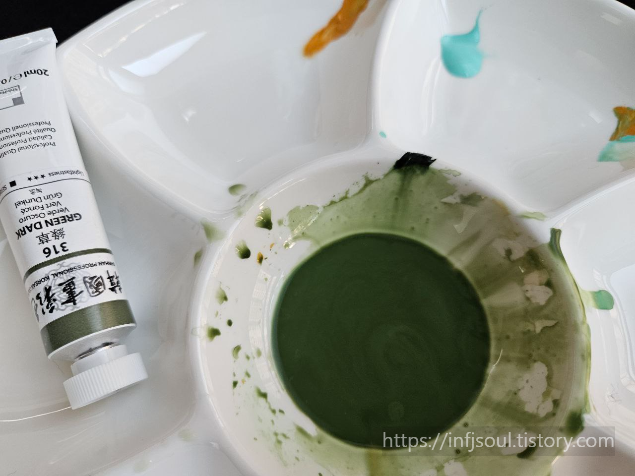 물감이 마르면서 색이 옅어지거나 진해질 수 있기 때문에,