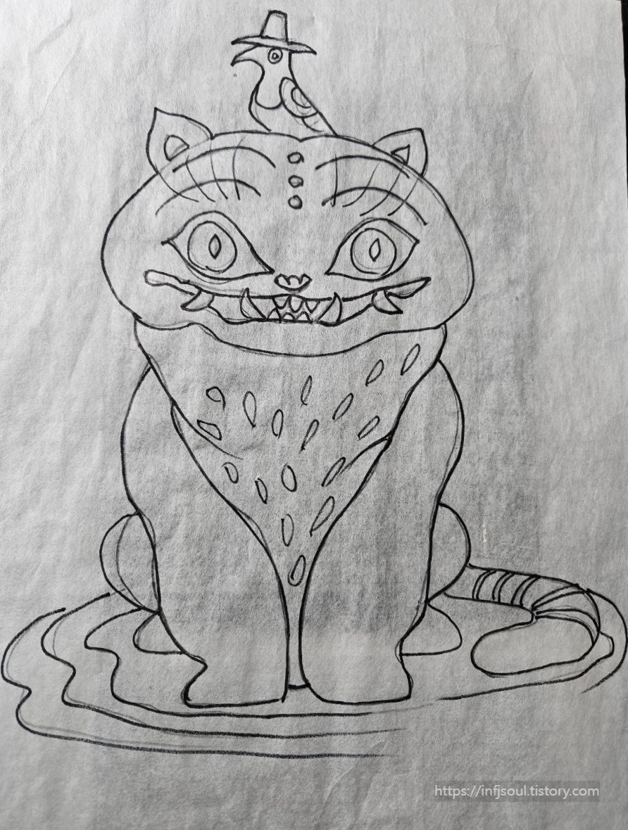 이 그림을 도안으로 해서 다시한번 밑그림을 그렸어요.