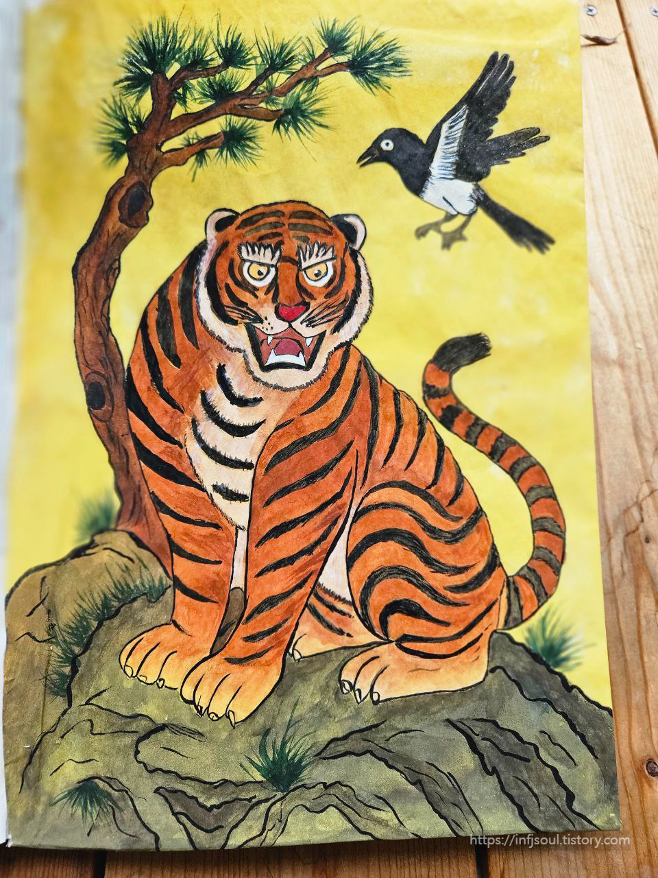 이번에는 전통 민화 호작도에 직접 도전했습니다.