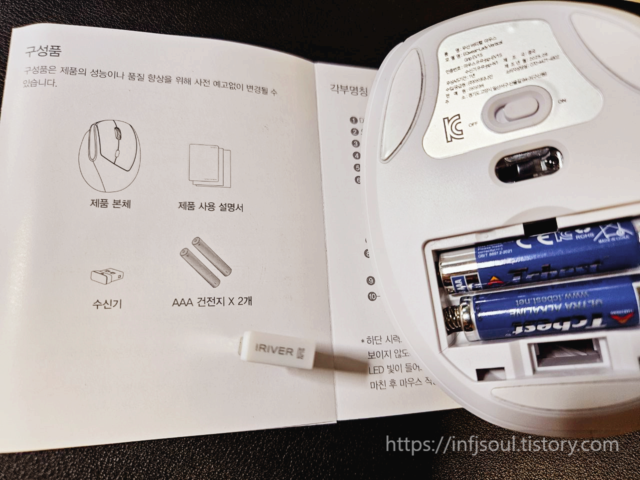 - 패키지 구성: 마우스 본체 + AAA 배터리 + USB 수신기 + 설명서