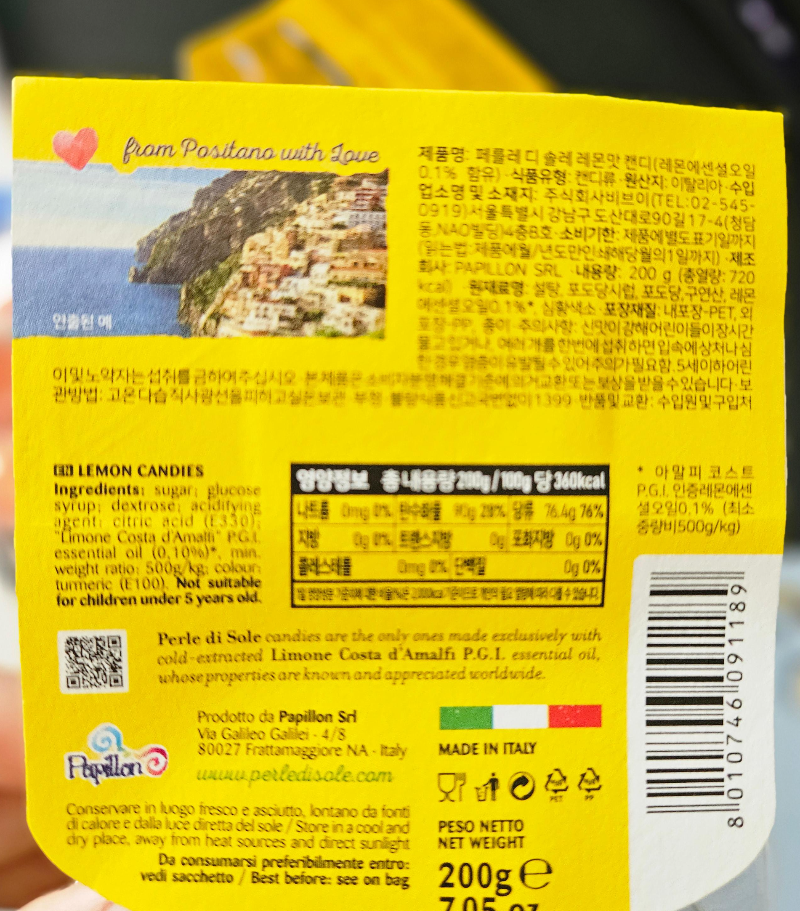 - 페를레디솔레 레몬캔디에 들어가는 아말피 코스트 레몬 → PGI 인증을 받은 레몬
