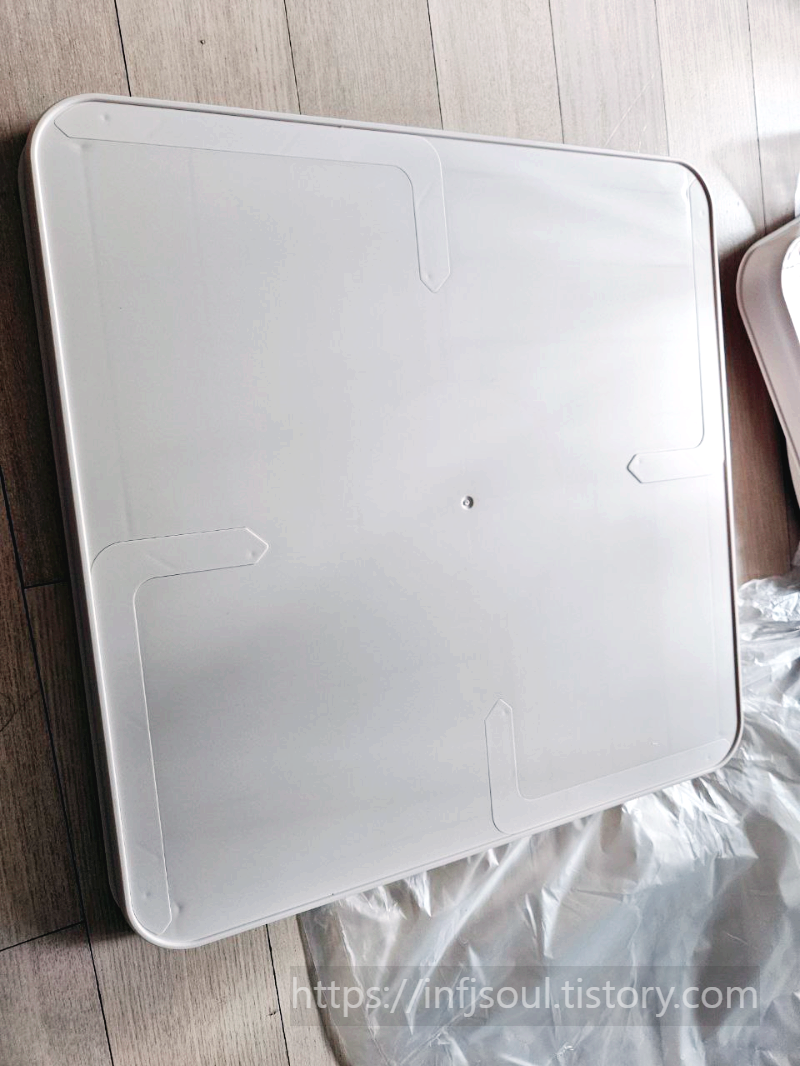 | 5 | 상판 준비 | 모든 수납판을 조립한 뒤, 홈이 없는 상판에 투명 아크릴 기둥 4개를 조립합니다. |