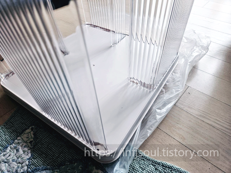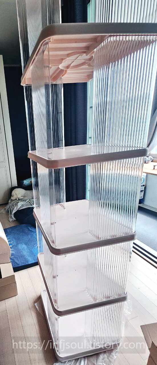 다만 5단 제품은 부품 수가 많아(회전판 및 수납판 6개, 투명 아크릴 기둥 20개) 다소 시간이 걸릴 수 있고, 처음 박스를 열었을 때는 부품이 많아 살짝 겁이 날 수도 있습니다.