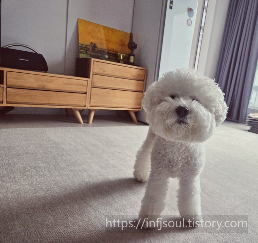비숑프리제는 곱슬거리는 이중모 구조로 털 빠짐은 적지만 엉킴이 심한 견종입니다. 친구의 엉뚱한 질문에서 출발해, 비숑 털의 특징의 필요성, 배냇털 시기부터 시작하는 훈련법, 눈 주변 관리