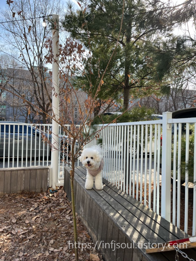 예전엔 작은 잔디마당도 있어서 미니 애견운동장 같은 느낌이었는데, 최근엔 담장이 없어져 조금 아쉽더라구요.