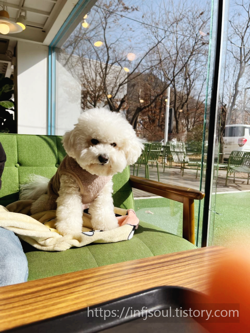 저도 강아지 봄군을 데리고 갔는데, 분위기가 차분해서인지 정말 편안해하더라고요.
