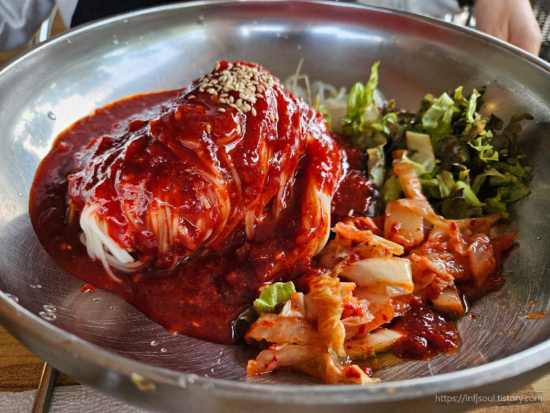 특히 묵은지 볶음이 별미인데, 국수와 함께 먹으면 감칠맛이 폭발합니다.