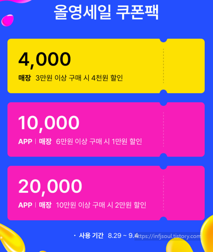 - 마지막 날(9/4)에는 보너스 쿠폰 2종 추가 지급